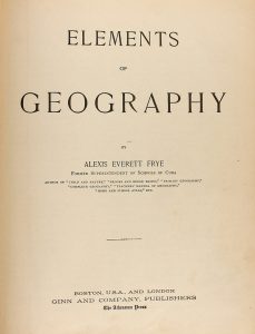1898 ca. EVERETT FRYE, ALEXIS: ELEMENTS OF GEOGRAPHY. Boston: Ginn And Company, 1898. 4º meyor. Enc. tela editorial decorada.