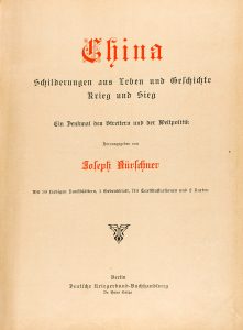 ca. 1900. (VIAJES-CHINA). KÜRSCHNER, JOSEP: CHINA SCHILDERUNGEN AUS LEBEN UND GESCHICHTE, KRIEG UND SIEG. Berlin: Deusctsche Kriegerbund-Buchhandlung, s.a. Folio menor. Tres partes: 547 + 443 + 462. Profus. ilustr. con dibujos y grabados en el...