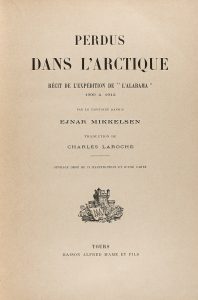 1910. (VIAJES-GEOGRAFIA). PERDUS DANS L´ARTIQUE. RECIT DE L´EXPEDITION DE L´ALABAMA. Tours, Maison Alfred Mame Et Fils sa., 1910. Folio menor. 389 p. 73 ilustraciones fotográficas. Mapa plegado en el centro. Encuadernación nueva en textil con...
