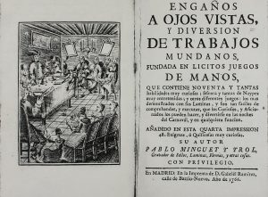 1766. (MAGIA). MINGUET: ENGAÑOS A OJOS VISTAS, Y DIVERSION DE TRABAJOS MUNDANOS, FUNDADA EN LICITOS JUEGOS DE MANOS. ... En Madrid: En la Imprenta de D. Gabriel Ramirez, 1766. 8º menor.175 p. Rústica provisional. FALTO DE FRONTIS Y PORTADA,...