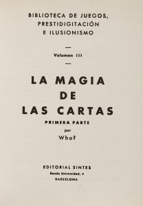 1952. (MAGIA). CONJUNTO DE 21 OBRAS DE LA BIBLIOTECA DE JUEGOS, PRESTIDIGITACION, ILUSIONISMO,... POR WHO?. NUMEROS DE 3 A 6, DE 11 A 13, DE 23 A 34, 40 Y 41. Barcelona. Ed. Sintes, 1952. 21 volúmenes en 8º menor.