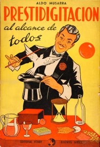 1953. (MAGIA). MUSARRA, ALDO: PRESTIDIGITACION AL ALCANCE DE TODOS. Buenos Aires: Artes Gráficas Bartolomé, Ed. Hobby, 1953. 4º mayor. 147 p., 2 h. 538 grabados. Rústica ilustr.