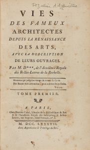 1787. (BIOGRAFIA-ARTE). [EZALLIER D´ARGENVILLE:]. VIES DES FAMEUX ARCHITECTES DEPUIS LA RENAISSANCE DES ARTS, AVEC LA DESCRIPTION DE LEURS OUVRAGES. Paris: Chez Debure, 1787. Dos vol. en 8º mayor.1 lám., LXXXIV + 494 p. II: 1 lám., 2 h., XXXVI...
