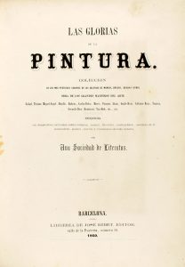 1860-1861. (ARTE). LAS GLORIAS DE LA PINTURA. Barcelona: Ed. Jose Ribet, 1860-1861. 2 vol. en 4º mayor. I: VIII + 392 p., 2 h. II: 2 h., 408 p., 2 h. Profus. ilustr. con lám. fuera del texto. Señal de óxido. Dos vol. enc. en media piel, nervios....