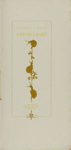 1902. (BIBLIOFILIA- MODERNISMO). RIQUER, ALEXANDRE DE: ANYORANSES. POESIES INTIMES. Barcelona: Imp. A. Verdaguer, 1902. 8º mayor estrecho. 70 p., 3 h. Cada página bellamente decorada con una orla litográfica por el autor. Primera edición, en...