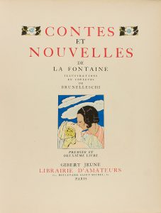 1937. (EROTICA-BIBLIOFILIA). FONTAINE; BRUNELLESCHI [ilustrador]: CONTES ET NOUVELLES DE... Paris: Librairie d´Amateurs, 1937. 4º mayor. Varias láminas a color. Enc. en rústica.