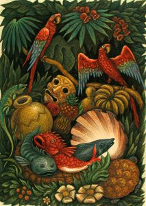 Amigos del libro, 1944. Folio menor. X p., 1 h., 184 p., 3 h. Frontispicio. Ilustrado con viñetas, láminas, ilustraciones en texto xilografias a color. Texto impreso a dos tintas. Pergamino rígido con doble tejuelo, nervios e hierros dorados en lomo. Ejemplar numerado impreso para Luis Perez-Sala y Capdevila del tiraje de 557 numerados ejemplares.