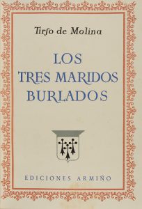 1951. (BIBLIOFILIA). TIRSO DE MOLINA; PLA. JAIME [ilustrador]: LOS TRES MARIDOS BURLADOS. Ediciones Armiño. Barcelona: Editorial Gustavo Gili, S.A., 1951. 8º mayor. 127 p. Con ilustraciones de Jaime PLA. Enc. piel rozada ilustrada con ruedas e...