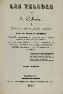 1834. (LITERATURA). DUCRAY-DUMINIL, M.: LAS VELADAS DE LA CABAÑA. Barcelona: Imp. Juan Francisco Piferrer, 1834. 4 vol. en 8º menor. I: 1 h., V + 285 p., 4 lám. grabadas por Domingo Estruc. II: 1 h., 287 p., 4 lám. III: 1 h., 330 p., 1 h., 4...