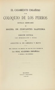 1912. (CERVANTINA). CERVANTES SAAVEDRA, MIGUEL DE: EL CASAMIENTO ENGAÑOSO Y EL COLOQUIO DE LOS PERROS. Madrid: Bailly-Bailliere, 1912. 4º. 3 h. + 744 p., 1 h., 1 lám. fotográfica ´Portada del Antiguo Hospital de la Resurrección de...