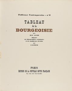 1929. (VANGUARDIAS). JACOB, MAX: TABLEAU DE LA BOURGEOISIE. Paris: Editions de la Nouvelle Revue Francaise, 1929. 4º menor. 220 p. Illustrado con 10 litografias originales y con numerosos dibujos del autor. Rústica. Este el el último volumen de...