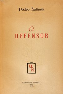 1948. (LITERATURA-GENERACION DEL 27). SALINAS, PEDRO: EL DEFENSOR. Bogotá: Universidad Nacional, 1948. 4º menor. 273 p. Enc. en tela reciente, tejuelo, conserva la rústica original remontada. Papel algo tostado. PRIMERA EDICIÓN de esta...
