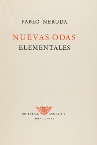 1957. (PRIMERA EDICION). NERUDA, PABLO: TERCER LIBRO DE LAS ODAS. Buenos Aires: Losada, Colección Poetas de España y América, 1957. Primera edición. 208 p. Rústica de editorial con solapas con ilustración litográfica de Baldessari. [Más:]...