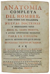 1728. (MEDICINA-ANATOMIA). MARTINEZ, MARTIN: ANATOMIA COMPLETA DEL HOMBRE, CON TODOS LOS HALLAZGOS, NUEVAS DOCTRINAS Y OBSERVACIONES RARAS HASTA EL TIEMPO PRESENTE, Y MUCHAS ADVERTENCIAS NECESSARIAS PARA LA CIRUGIA: SEGUN EL METHODO CON QUE SE...