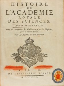 1735. (CIENCIAS). HISTOIRE DE L´ACADEMIE ROYALE DES SCIENCES ANNEE MDCCXXXIII Avec les Mémoires de Mathématique & de Physique pour la même Année. Paris: Imp. Royale, 1735. 4º menor. Frontis grabado + 4 h. + 516 p. Ilustr. con numerosas láms....