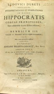 1784. (MEDICINA). DURETO, LUDOVICO: LUDOVICI DURETI SEGUSITANI INTERPRETATIONES ET ENARRATIONES IN MAGNI COACAS PRAENOTIONES. Opus admirabible in tres libros tributum... cum indice rerum memorabilium amplissimo. Lugduni: apiud S. Piestre & J.B....