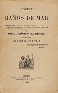 PRÁCTICO DEL BAÑISTA. Madrid: Imp. M. Rivadeneyra, 1869. 8º. XVI + 522 p., 18 p. de publicidad. Rústica original edit. algo deslucida.