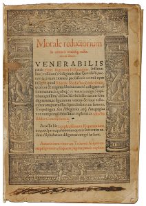 1517. (RELIGION). PICTAVIENSI, BERTHOLII: MORALE REDUCTORIUM IN OMNEIS UTRIUSQ(UE); TESTAMENTI LIBROS. Lugduni (Lyon): Imp. Mathiam Bonhome, 1538. 4º menor. 10 h., 170 fol. Cabeceras, texto a dos columnas, en letra gótica y con apostillas...