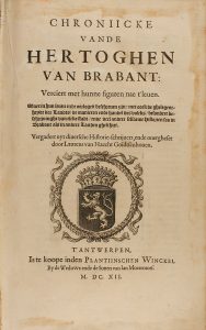 1612. (GENEALOGIA-HISTORIA). HAECHT GOIDTSENHOUEN, LAURENS VAN: CHRONIICKE VANDE HERTOGEN VAN BRAVANT: VERCIERT MET HUNNE FIGUREN NAE T´LEUEN. T Antwerpen (Amberes): Plantiisnchen Winckel, 1612. Folio menor. 4 h., 116 fol., 2 h. Texto a dos...