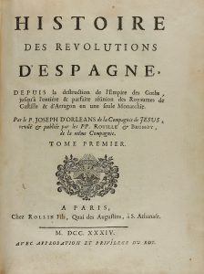 1734. (HISTORIA DE ESPAÑA). ORLEANS, JOSEPH D´: HISTOIRE DES REVOLUTIONS D´ESPAGNE depuis la destruction de l´Empire des Goths, jusqu´à l´entiére & parfaite réünion des Royaumes de Castille & d´Aragon en une seule monarchie. Paris: chez...