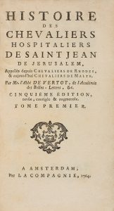 1764. (HISTORIA-ORDENESCAVALLERIA). VERTOR, ABBÉ DE: HISTOIRE DES CHEVALIERS HOSPITALIERS DE SAINT JEAN DE JERUSALEM. Appellés despuis CHEVALIERS DE RHODES, & aujour d´hui CHEVALIERS DE MALTE. Amsterdam: La Compagnie, 1764. 5 vol. en 8º menor....