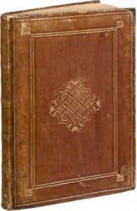 1545, in-folio de 78 ff. sign. āā 4, a-h8, i10 ; 1 pl. hors-texte, veau fauve, sur les plats, filets dorés et à froid en encadrement, au centre, grand motif d’entrelacs se terminant par un fer trilobé à fond azuré, l’ensemble sur fond criblé, dos lisse orné, tranches dorées (reliure de l’époque). ÉDITION ORIGINALE des Livres I et II, dédiée à François Ier. Un traité en sept livres destiné à répondre aux besoins des nouveaux architectes, nourris de l’héritage antique et des inventions de la Renaissance. En choisissant une structure en sept livres, Sebastiano Serlio (1475-1554) se démarque avec éclat des Dix Livres d’architecture de Vitruve et d’Alberti. Il commença par publier à Venise les Livres III et IV, respectivement en 1540 et 1537, puis, lors de son séjour à Fontainebleau, il publie les Livres I et II qu’il finance avec les dotations du roi et de Marguerite de Navarre et les émoluments d’Ipolito d’Este et d’Antoine de Clermont. Le Livre I traite de la géométrie et le Livre II de la perspective avec à la fin un développement sur la scénographie théâtrale. Jean Martin, un traducteur talentueux. Serlio trouve en Jean Martin (?-1553), secrétaire du cardinal Robert de Lenoncourt, non seulement un excellent italianisant, mais aussi un humaniste s’intéressant tout particulièrement à l’architecture. De là, un texte français élégant, clair et précis, très fidèle à la pensée de son auteur. Un magnifique frontispice, couronné de la salamandre de François Ier, puis 132 bois dont 26 à pleine page. Exemplaire du tirage C. Vène, p. 66, 9 ; BAL, IV, 2966-15 ; Fowler & Baer, 303 ; Cicognara, 666. Est relié avec : 1. Il terzo libro… nel qual si fugarano, e descrivono le antiqua di Roma, e le altri che sono in Italia, e fuori de Italia… Venise, Francesco Marcolini, 1544, in-folio de 78 ff. sign. A 2, B-V4. Seconde édition du Livre III, paru pour la première fois en 1540. « En plus d’offrir aux architectes, une visite aux grands monuments de l’Antiquité à Rome et en Italie, et même à la grande pyramide de Khéops et au sphinx de Gizeh en Égypte, Serlio présente dans le livre III ses connaissances sur l’architecture antique avec les différentes variations possibles, profitant d’un siècle de recherches et de relevés d’architecture… La grande originalité de Serlio dans les Livres III et IV est de présenter les relevés d’après l’antique en les confrontant systématiquement avec les règles énoncées dans le De architettura de Vitruve. » Vène, p. 62, 7 ; BAL, IV, 2968 ; Fowler & Baer, 309. 2. Reigles generales de l’architecture, sur les cinq manières d’edifices… Anvers, Pierre v ā Aelft, 1545, in-folio de 72 ff. sign. A-S Seconde édition de la traduction française par Pieter Coecke du Livre IV. Publiée pour la première fois en 1542, elle l’a été sans l’accord de Serlio qui s’en plaint dans la préface de l’originale de 1545 des Livres I et II. Le Livre IV est la pierre angulaire de l’ensemble. Il détaille le système des cinq ordres, appliqué aux colonnes et entablements, mais aussi aux portes, fenêtres et cheminées. Vène, p. 68, 10 ; Fowler & Baer, 317. 3. Quinto libro d’architettura di Sabastiano Serlio bolognese, Nel quale se tratta de diverse forme de Tempij Sacri… À Paris, Michel de Vascosan, 1547, in-folio de 34 ff. sign. A-E 6, F4. ÉDITION ORIGINALE du Livre V. L’ouvrage met en pratique la grammaire architecturale énoncée au Livre IV pour les édifices religieux. Traduction de Jean Martin avec en vis-à-vis le texte italien imprimé en italique. 29 bois gravés et un superbe encadrement de titre sur fond noir. Exemplaire du tirage B, au nom de Vascosan. Vène, p. 68, 10 ; BAL, IV, 2966-23 ; Fowler & Baer, 321 ; Millard, I, 152. Intéressante réunion des cinq premiers livres de Sebastiano Serlio, le grand théoricien de l’architecture du milieu du XVIe siècle, professeur et maître de tous les architectes de l’Europe de son époque. Précédé par Fra Giocondo, il sera suivi par Andrea Palladio. Dans le domaine du livre, la grande nouveauté apportée par Serlio consiste en la prééminence de l’image, le texte jouant le rôle de simple commentaire. Précieux exemplaire relié à Paris pour Marcus Fugger (1529-1597), le banquier augsbourgeois de l’Empire germanique, avec sa signature autographe. Ayant succédé en 1560 à son père Anton, le fameux banquier d’Augsbourg, dont la famille favorisa l’accession au trône de Charles-Quint, il devint le banquier de ses successeurs. Comme ses cousins, Raimond, Johann Jakob et Ulrich, Marcus constitua une importante bibliothèque. Deux principes présidèrent à ses choix de bibliophile : érudition et goût pour les reliures de qualité. Ainsi, confia-t-il ses volumes aux meilleurs relieurs parisiens, parmi lesquels Gommar Estienne. La reliure du Serlio est à la croisée de ses reliures élaborées et de celles d’aspect plus modeste. Elle est d’origine parisienne et date des années 1550, époque où il visita Paris. Elle présente un intéressant décor central où l’un des fers employés l’était aussi par le Cupid’s Bow Binder, l’Atelier de l’arc de Cupidon, qui travailla pour Grolier, Catherine de Médicis, Anne de Montmorency, le duc de Ferrare… D’une belle teinte, elle présente des restaurations. Le dos a été anciennement refait. Les livres d’architecture de cette provenance sont rares. Dimensions : 367 x 249 mm. Provenances : Marcus Fuggerus (signature en haut du premier plat, accompagnée d’une marque de rangement) ; Philipp Fugger, son fils, mort en 1601 ; Marcus Philipp Fugger, fils de celui-ci, mort en 1620 ; Marquart Fugger, frère du précédent, qui épousa en 1624 Maria Christina, comtesse d’Öttingen-Wallerstein ; princes d’Öttingen-Wallerstein (Cat., 6-7 nov. 1933, n° 331, « Komplett von grösster Seltenheit… Rücken rest[auriert] [(Les exem