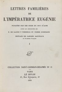 1935. (HISTORIA). LETTRES FAMILIERES DE L´IMPERATRICE EUGENIE CONSERVEES DANS LES ARCHIVES DU PALAIS DE LIRIA ET PUBLIEES PAR LES SOINS DU DUC D´ALBE AVEC LE CONCOURS DE F. DE LLAONS Y TORRIGLIA ET PIERRE JOSSERAND. Préface de Gabriel Hanotaux....