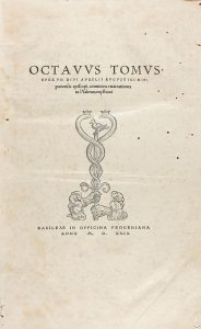 1529. (HUMANIDADES). SAN AGUSTIN: OCTAVUS TOMUS OPERUM DIVI AURELII AUGUSTINI HIPPONENESIS EPISCOPI, CONTINENES ENARRATIONES IN PSALMOS MYSTICOS. Basileae: in Officina Frobeniana, 1529. Folio. 1205 p. Señal de humedad, señal de polilla en las...