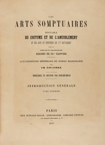 1857-1858. (HUMANIDADES). CIAPPORI, CLUS: LES ARTS SOMPTUAIRES. HISTOIRE DU COSTUME ET DE L´AMEUBLEMENT ET DES ARTS ET INDUSTRIES QUI S´Y RATTACHENT. Paris: chez Hangard-Amuge, lit., libr.-edit., 1857-1858. 4 vols. en 4º. I. Introduction...