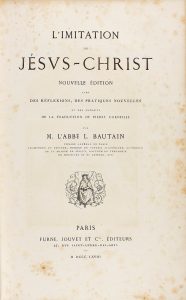 1868. (RELIGION). BAUTAIN, ABBE: L´IMITATION DE JESUS-CHRIST NOUVELLE EDITION AVEC DES REFLEXIONS DES PRATIQUES NOUVELLES. Paris: Furne, Jouve et Cie, edit., 1868. 4º. 530 p., 7 láms. grabados al cobre. Viñetas. Puntos de óxido. Enc. en plena...