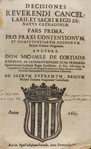 1661. (CATALUNYA-HISTORIA). CORTIADA, MICHAELE: DECISIONES REVERENDI CANCELARII, ET SACRI REGII SENATUS CATHALONIAE. PARS PRIMA [Más:] PARS SECUNDA. Barcino: apud Iosephum Forcada, 1661 y 1665. 2 vols. en folio menor. I: 6 h. + 760 p., 45 h. de...