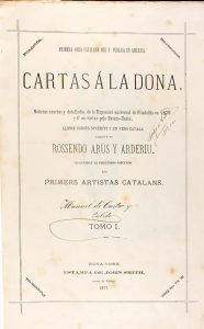 1877. (EXPOSICION UNIVERSAL). ARÚS Y ARDERIU, ROSSENDO: CARTAS Á LA DONA. Noticias exactas y detalladas de la Exposició universal de Filadelfia en 1876 y d´un viatxe pels Estats-Units. Nova-York: Estampa de John Smith, 1877. 4º mayor. 285 p., 1...