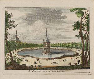 1780 ca. CONJUNTO DE DOS VISTAS DE EL RETIRO. Grabados de 17x15 cm cada uno. Uno de ellos coloreado.