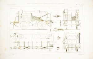 1850 ca. (FERROCARRILES). ARMENGAUD [grabados]; CHAUMONT [dibujó]: 4 GRABADOS DE MAQUINAS A VAPOR DE FERROCARRILES. Paris: Imp. Chardon, sa. Grabados al cobre. 30 x 45 cm. Pequeñas anchas de óxido.