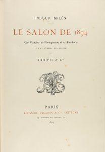 1894. (ARTE-GRABADOS). MILES, ROGER; GOUPIL & CIE: LE SALON DE 1894. Cent planches en photogravure et la l´Eau-forte et un fac-simile en couleurs. Paris: Boussod, Valadon & Cie edit., 1894. Folio menor. 100 p., 1 h. Ilustr. con 100 fotograbados y...