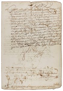 1641. (FIRMA REAL). DOCUMENTO CON FIRMA DE FELIPE IV. Folio menor. Madrid, 1 de febrero de 1641. Manuscrito en favor de Don Gabriel Lopez de Leon para que le sea pagado el sueldo y en reconocimiento de su valor y obediencia demostrada en la campaña...