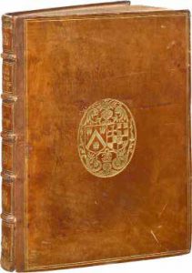 excellente Princesse Madame Élizabet d’Autriche son espouse, le Dimanche vingtcinquième. et entrée de ladicte dame en icelle ville… Paris, Imprimerie de Denis du Pré, pour Olivier Codoré, 1572-1571, 4 parties en un vol. in-4° de 53, [2 pl. et 1] ff. ; 10 ff. ; 26, [2 dern. bl.] ff. ; 9, [un bl.] ff., vélin blanc à rabats, dos lisse avec titre en long à l’encre brune, traces de lacet (reliure de l’époque). Première édition. Ce récit décrit les festivités (entrée et couronnement) organisées du 6 au 25 mars 1571, par la ville de Paris, en l’honneur du couple royal, Charles IX et Élisabeth d’Autriche, la fille de l’empereur Maximilien II. La relation de ces événements que l’on doit à Simon Bouquet, fut imprimée l’année suivante. Ces récits sont entremêlés d’un grand nombre de pièces de RONSARD, Baïf, Jamyn, Dorat… Le XVIe siècle, âge d’or des entrées royales, qui furent un laboratoire d’essais, révélateur de l’évolution générale de l’art autant qu’instrument essentiel de l’affirmation du pouvoir monarchique. Conçues à la façon des anciens triomphes romains, elles étaient l’objet de longs et coûteux préparatifs. Ces fêtes se déroulaient dans un décor éphémère, réalisé à partir de structures en bois sur lesquelles étaient tendues des toiles ornées de figures en trompe-l’œil. Ces créations étaient dues à un nouveau type d’artistes qui se faisaient à la fois architectes, peintres et sculpteurs. Les poètes composaient pour la circonstance des vers soit déclamés au passage des cortèges, soit inscrits sur les édifices. Les échevins de Paris, avec à leur tête Simon Bouquet, confièrent ici à Ronsard et à Dorat la responsabilité des deux entrées solennelles dans la capitale. Ronsard, l’organisateur principal, choisit alors un programme iconographique reflétant deux thèmes : l’union de deux pays, la France et l’Allemagne, assurée par le mariage de Charles IX et d’Élisabeth, et la paix retrouvée, en vertu du traité de Saint- Germain. Plus de six mois furent nécessaires à la préparation ; les responsables engagèrent pour l’occasion Germain Pilon (ca 1528-1590) comme sculpteur, Le Conte pour les travaux de charpenterie ; les perspectives et les peintures furent confiées à Pierre d’Angers et à Nicolo dell’Abbate (ca 1509-1571), l’émule du Primatice à Fontainebleau. Bien que les entrées aient eu lieu à trois semaines d’intervalle, celle du roi le 6 mars et celle d’Elisabeth le 25, quatre jours après le couronnement, il semblerait que leur programme ait été le même. 16 bois gravés à pleine page forment le cycle iconographique. On les doit au graveur et lapidaire Olivier Codoré. Ils représentent les arcs de triomphe élevés à la porte Saint-Denis, à la porte aux Peintres, et au bout du pont Notre-Dame, les fontaines du Ponceau et des Saints-Innocents, la statue de Junon, l’arc de triomphe élevé devant le Châtelet, à l’Apport de Paris, la décoration du pont Notre-Dame, le surtout de vermeil offert au roi par les échevins de Paris… La quatrième partie, qui manque à la plupart des exemplaires, est occupée par un long poème d’Étienne Pasquier, où l’historien célèbre le traité de Saint-Germain, terme d’une décennie de guerres qui avaient ajourné d’autant l’entrée de Charles IX dans sa capitale. La paix, signée en août 1570, offrait enfin un moment propice pour les cérémonies. Seul Ruth Mortimer distingue différentes émissions pour cet ouvrage. Notre volume a le feuillet G 3 imprimé en caractères romains, les feuillets I 2 et I3 recomposés ; en revanche, le mot vouloir au verso du f. I2 n’a pas été ajouté. Exemplaire parfaitement conservé, à très belles marges, traces de témoins, dans sa première reliure en vélin. Mortimer décrit un exemplaire sur papier fort d’après l’épaisseur du volume qui est de 15 mm, elle est ici de 16 mm. Condition rare. L’exemplaire est placé dans une boîte à rabats et dos de maroquin bleu. Dimensions : 243 x 164 mm. Provenance : Helmut N. Friedlaender (Cat., 2001, n° 142). Gourary, 342 (“First edition of one of the finest french fête books of the 16th century”) ; Ruggieri, 276, pour un ex. sans la 4e partie, relié par Lortic ; Vinet, 474 ; Destailleur, 1891, n° 293 ; Mortimer, I, 205-206, pour des ex. reliés au XVIIIe et XIXe siècle ; Fairfax- Murray, I, 152, pour un ex. sans la 4e partie, relié par Niédrée ; Barbier, Ma Bibliothèque poétique, II, Ronsard, 79 ; Tchemerzine, IX, 97-98 ; Veyrin-Forrer (J.), Ronsard, la trompette et la lyre, Bibliothèque nationale, pp.; Guignard (J.), Trésors de la bibliothèque de l’Arsenal, n° 158, pour un ex. en vélin relié par Claude de Picques pour être offert au roi.