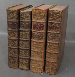 de motifs dorés, [Rel. de l'époque], un peu frottée. xxviii, 748 p. Édition originale. Quérard attribue l'ouvrage à Cl. J. Prevost. Quérard, VII, 336.— JOINTS : • DANTY. TRAITÉ DE LA PREUVE PAR TÉMOINS EN MATIÈRE CIVILE , contenant le commentaire latin & françois de M. Jean Boiceau. Paris, François Montalant, 1715 ; pet. in-4, veau granité, dos à nerfs orné de motifs dorés, [Rel. de l'époque]. Seconde édition à laquelle « on a ajouté le Traité de la preuve par comparaison d'écritures, de M. Le Vayer. » • [GALLON]. CONFÉRENCE DE L'ORDONNANCE DE LOUIS XIV, du mois d'août 1669. Sur le fait des eaux et forêts [.]. Contenant les Loix forestières de France. Paris, Pierre Prault, 1752 ; 2 vol. in-4, veau marbré, dos à nerfs ornés de motifs dorés, pièces de titre rouges et de tomaison marron, [Rel. de l'époque]. Bon exemplaire malgré des accrocs aux coiffes.