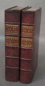 Sainte Thérèse. Les Œuvres De Sainte Thérèse divisées en deux parties. De la traduction de Mr Arnauld d'Andilly. Paris, Louis Roulland, 1702 ; 2 vol. in-8, maroquin vieux rouge, encadrement d'un filet à froid sur les plats, dos à nerfs,...