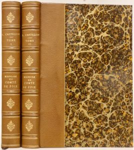 [Gascogne].— Castillon (Héliodore). Histoire Du Comté De Foix Depuis Les Temps Anciens Jusqu 'à Nos Jours. Toulouse, Paris, Cazaux, Garnier, 1852 ; 2 vol. in-8, demi-chagrin fauve, dos à nerfs orné de motifs dorés, couvertures supérieures...