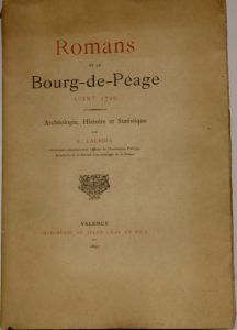 Lacroix (André). Romans Et Le Bourg-De -Péage Avant 1790. Archéologie, histoire et statistique. Valence, Jules Céas et fils, 1897 ; gr. in-8, broché, couverture rempliée. PORTAIT-FRONTISPICE GRAVÉ, TIRÉ SUR PAPIER DE CHINE APPLIQUÉ. Tiré à...