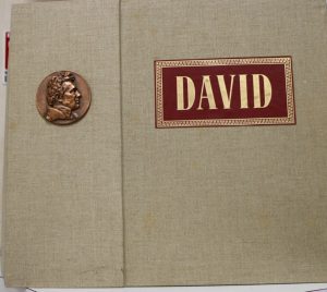 Adhemar (Jean). David. Naissance Du Génie D 'Un Peintre. Préface de Jean Cassou. Paris, Solar, 1 953 ; pet. in-folio, emboîtage en toile de jute, pièce de titre rouge sur le dessus, médaille en bronze, ornant le dos frappée spécialement aux...