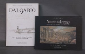 illustré. Publication des dessins que réalisa l'architecte lyonnais (né en Italie en 1788, mort à Oullins en 1852) lors de son voyage en 1843 à Constantinople et Athènes, en compagnie d'Antoine-Marie Chenavard etd'Etienne Rey.— JOINT : • MERLIN (Bernard). ARCHITECTES LYONNAIS AUTOUR DE LA MÉDITERRANÉE. (XIXE-XXE SIÈCLES). S. l., 1995 ; in-4 oblong, cartonnage de l'éditeur illustré.