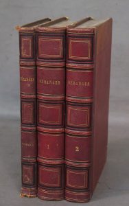 Béranger (Pierre-Jean de). Œuvres Complètes. Nouvelle édition revue par l'auteur, illustrée de cinquante-deux belles gravures sur acier entièrement inédites.— Musique des Chansons de P.- J. de Béranger. Paris, Perrotin, 1857 ; 3 vol. in-8,...