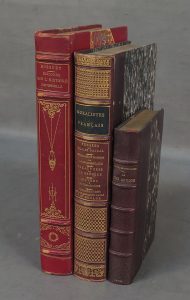 tête dorée. FRONTISPICE ET 14 FIGURES HORS TEXTE GRAVÉS SUR ACIER . Bon exemplaire.— JOINTS : • MORALISTES FRANÇAIS. Pensées de Blaise Pascal ; Réflexions et maximes de La Rochefoucauld ; [.] Caractères de La Bruyère [.]. Paris, Firmin Didot frères et Cie, 1836 ; pet. in-4, demi-chagrin aubergine, dos à nerfs orné de motifs dorés, tête dorée, [L. Guetant]. PORTRAIT DE PASCAL GRAVÉ SUR ACIER EN FRONTISPICE. Texte sur deux colonnes. Bon exemplaire. • FUSTEL DE COULANGES. LA CITÉ ANTIQUE.Étude sur le culte, le droit, les institutions de la Grèce et de Rome. Paris, Hachette, 1908 ; gr. in-12, demi-maroquin marron à coins, dos à nerfs, tête dorée, couvertures cons., [Pagnant]. Ex-libris W. Lougouinine.