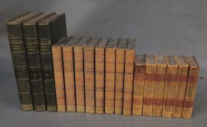 littérature. Paris, Adr. Leclere et Cie, 1826-1828 ; 8 vol. in-8, demi-veau aubergine, dos à nerfs plats ornés de motifs dorés et à froid, tranches cailloutées, [Rel. de l'époque]. Bien complet des 8 volumes, en reliure uniforme, ce qui est rare. Dos passés un peu frottés ; quelques rousseurs. Quérard, I, 461.— JOINTS : • ARNAULD D'ANDILLY (Robert). ŒUVRES DE SAINTE THÉRÈSE. Lyon, Fr. Matheron, 1818 ; 6 vol. in-12, basane racinée, dos lisses ornés de motifs dorés, pièces de titre et de tomaison rouges, tranches cailloutées, [Rel. de l'époque]. FRONTISPICE GRAVÉ SUR CUIVRE. Reliures un peu frottés, accrocs à deux coiffes ; petite mouillure claire marginale dans le coin inférieur. • SANCTILEONIS MAGNI ROMANI PONTIFICIS. Opera Omnia. Petit-Montrouge, J.-P. Migne, 1846 ; 3 vol. in-8, demi-chagrin vert mousse, dos à nerfs ornés de motifs dorés, [Rel. de l'époque]. Bon exemplaire en reliure de l'époque.