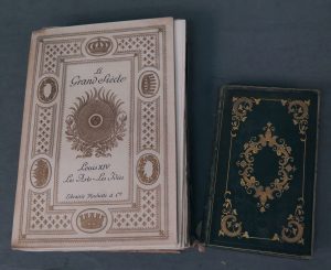 édition. Brochage cassé.— JOINT : • GABOURD (Amédée). HISTOIRE DE LOUIS XIV. Tours, Mame, 1865 ; in-8, basane vert mousse, sur les plats large décor doré et fond à froid, dos à nerfs orné, tranches dorées, [Rel. de l'époque], dos et chants frottés. FRONTISPICE, TITRE GRAVÉ, 2 FIGURES HORS TEXTE, LE TOUT GRAVÉ SUR CUIVRE .Seconde édition. La dorure du dos a passé ; quelques légères rousseurs.