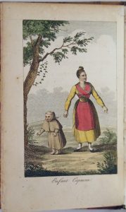 costumes différens, la plupart d'après des dessins exécutés en 1 809 et 1 81 0. Paris, A. Nepveu, 1815 ; 6 vol. in-1 8, demi-veau fauve, dos lisse orné en long de fleurons dorés, tranches marbrées [Rel. de l'époque], pet. épidermures. 1) FRONTISPICE GRAVÉ SUR CUIVRE, AQUARELLÉ ET REPLIÉ , xix, 218 p.- 2) FRONTISPICE AQUARELLÉ, [2] f., 215 p. et 4 FIGURES H. T. AQUARELLÉES.- 3) FRONTISPICE AQUARELLÉ , [2] f., 219 p.et4 FIGURES H. T. AQUARELLÉES .- 4) FRONTISPICE AQUARELLÉ, [2] f., 217 p. et 11 FIGURES H. T.AQUARELLÉES.- 5) FRONTISPICE AQUARELLÉ , [2] f., 253 p. et 21 FIGURES H. T. AQUARELLÉES dont une à double page.- 6) FRONTISPICE AQUARELLÉ ,[2] f., 231 p.et8 FIGURES H. T. AQUARELLÉES .Édition ornée de 54 PLANCHES COLORIÉES, y compris le frontispice, représentant pour la plupart des habitants en costumes, des monuments et des scènes pittoresques (combats de taureaux). "J'ai tâché d'offrir à mes lecteurs quelque chose de neuf [.]. Ce sont particulièrement des ouvrages en langues étrangères qui ont servi de base à ma description et au texte explicatif d'estampes jusqu'alors inédites pour la France. Sans négliger le voyage pittoresque de don Antonio Ponz, dont j'ai eu constamment l'original espagnol sous les yeux, j'ai recouru plus particulièrement à deux ouvrages publiés récemment en Angleterre, l'un en 1812, l'autre en 1813. Le texte magnifique de ces ouvrages est enrichi d'un grand nombre d'estampes qui ont été transportées dans le mien. M. Bradford, auteur du plus considérable des deux, étoit attaché en qualité de dessinateur à l'état-major de lord Wellington. L'autre, publié sous cetitre modeste, Costumes ofPortugal, est rempli d'observations ingénieuses et piquantes." (Préface, p. V-VII). Le précis historique, qui s'étend depuis les Carthaginois jusqu'à Ferdinand VII, occupe le tome 1 ; le volume suivant décrit la Catalogne ainsi que les royaumes de Valence, de Murcie et de Grenade. Le t. 3 traite du royaume de Séville (dont Cadix et Algésiras), de Gibraltar, des Juifs en Espagne, de l'Andalousie et du royaume de Galice. Dans le t. 4 sont abordés la principauté des Asturies, la Vieille Castille, la Biscaye ainsi que les royaumes d'Aragon, de Navarre et de Léon. Le suivant contient la suite du royaume de Léon, la Nouvelle Castille (description de Madrid), le royaume de Cordoue et Majorque. Enfin, le t. 6 est entièrement consacré au Portugal. Légères rousseurs, sinon très bon exemplaire, bien relié à l'époque. Colas, 439. Lipperheide, 1214. Brunet, I, 1226, n° 3. Quérard, I, 506.
