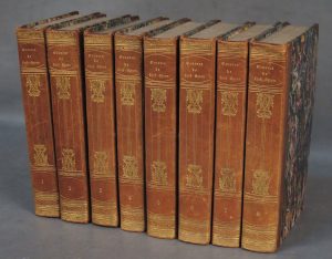 Byron (John). Œuvres. Quatrième édition, entièrement revue et corrigée [.] ; précédée d'une notice sur Lord Byron par M. Charles Nodier. Paris, Ladvocat, 1822-1825 ; 8 vol. in-8, demi-maroquin à long grain marron à coins, dos longs ornés...