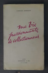 Damiron (Charles). Ma Vie Passionnante De Collectionneur. Lyon, imprimerie A. Rey, 1958 ; in-8, broché, non coupé. Édition originale. L'un des 100 exemplaires numérotés sur papier vélin pur fil blanc Lafuma, seul grand papier. Envoi autographe...